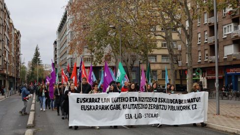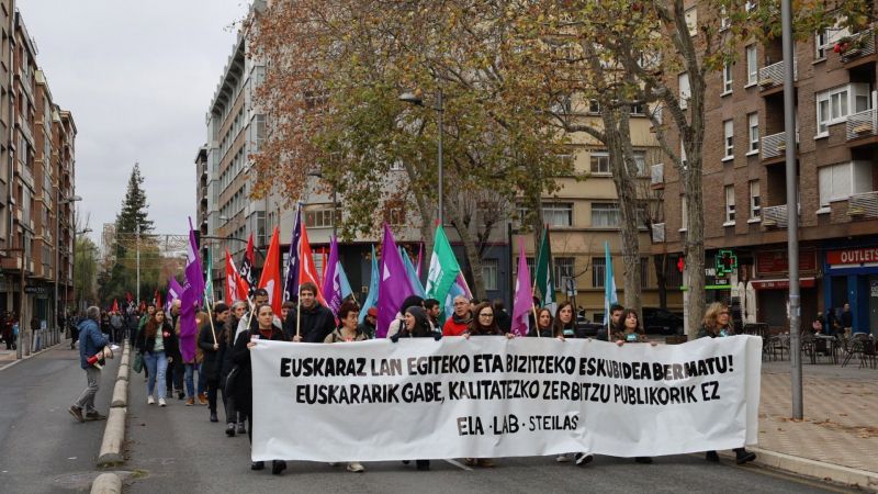 ELA, LAB eta Steilas sindikatuek euskal sektore publikoan lan egiteko eta zerbitzuak euskaraz eskaintzeko eskubidea bermatuko duen legea eskatu dute. Haien ustez, araudiak hizkuntza babestu beharko luke, eta, horregatik, Euskaraz lan egiteko eta bizitzeko eskubidea bermatu lemapean manifestazioa egin dute gaur Gasteizen.