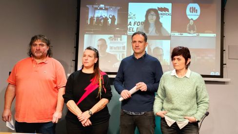 ELA, CIG, LAB, Steilas, Etxalde, Hiru, Intersindical Valenciana, Intersindical Catalana, IAC eta STEI sindikatuek sinatu dute adierazpena, "estaturik gabeko nazioetako sindikatu gisa", eta Bilbon egin dute agerraldia gaur goizean. Bertan izan dira ELA, LAB, Steilas eta Etxaldeko ordezkariak, eta beste lurraldeetako sindikatuetako arduradunek bideokonferentzia bidez parte hartu dute.