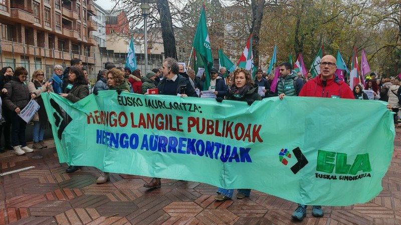 Mobilizazioa egin dute gaur ELA sindikatuko sektore publikoko 200 bat ordezkarik Eusko Legebiltzarrean, eskaera argi batekin: Jaurlaritzak zerbitzu publikoen alde egitea eta aurrekontu publikoetako partidak handitzean, “langile publikoen lan baldintzak hemen erabaki eta hobetzeko”. Hemengo langile publikoak hemengo aurrekontuak lelopean egin dute mobilizazioa, hain zuzen ere, eskatzeko 115.000 langile publikoren lan-baldintzak Madrilen eskuetan ez uztea.